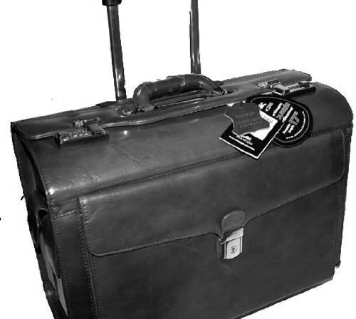 Mancini Black Lawyer/litigation Rolling Leather Briefcase Laptop 17"